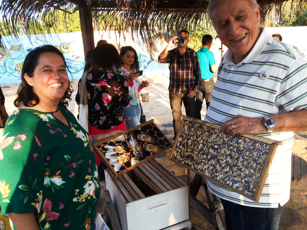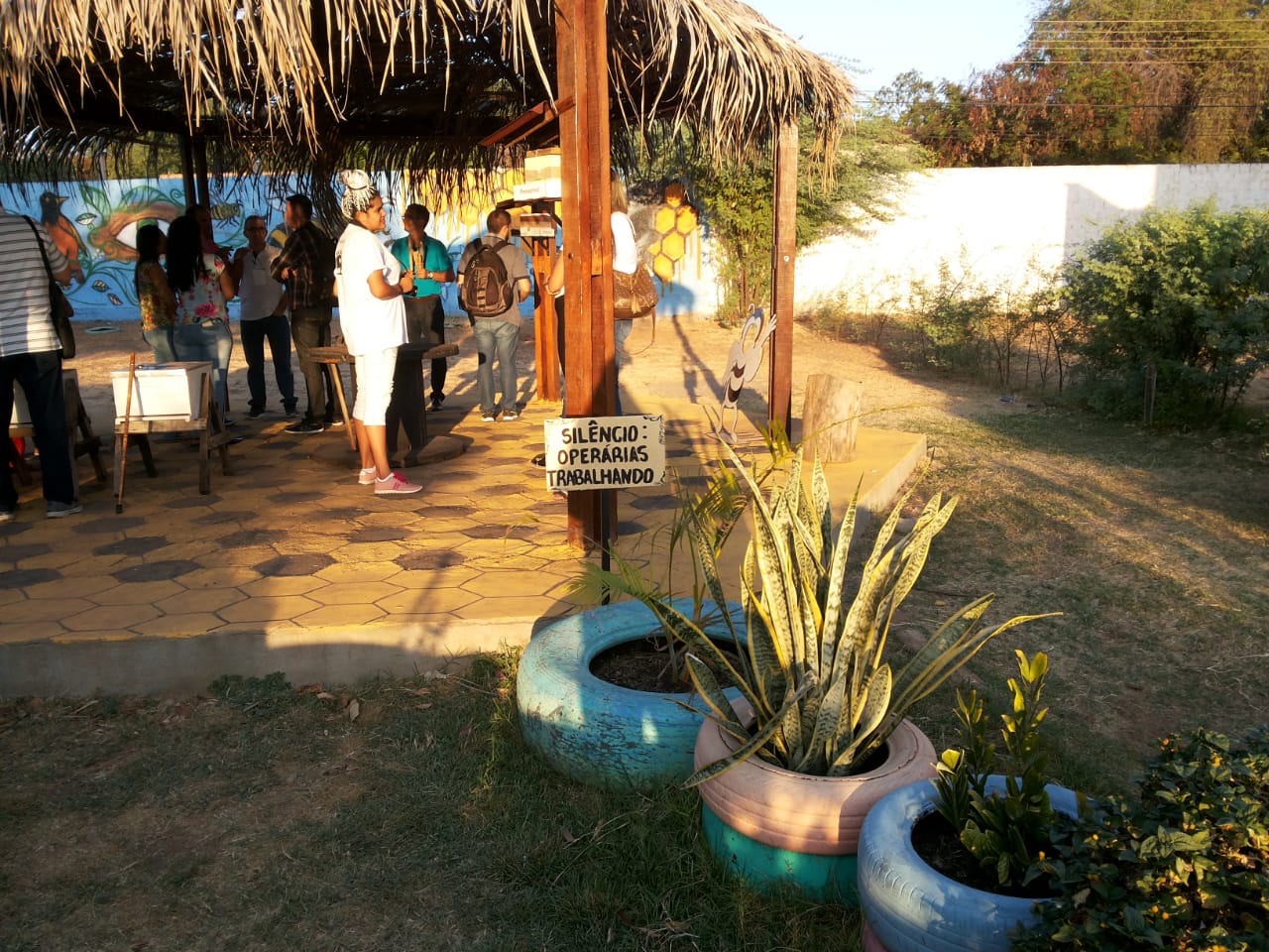 Durante la reunión, También se inauguró el meliponario didáctico que forma parte del espacio de connivencia con el medio semiárido E-casa. El espacio era muy hermoso. Tiene un proyecto llamado Botánica en 5 Sentidos, coordinado por el profesor de botánica de la UFPI, donde los niños entran con los ojos cerrados en el espacio y empiezan a oler, los sonidos, tato e, por fin, la visión, además de agudizar el sentido de la curiosidad y la imaginación. No final, Retiran ventas y observan a donde fueron (diferencias en el terreno) y las plantas que visitaron. Todo muy bonito e instigador!